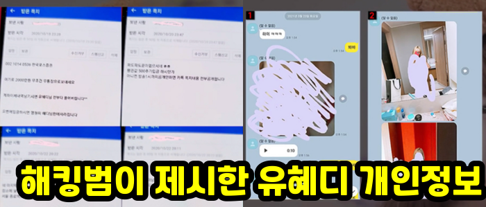 1. 유혜디는 2021년 이전부터(꽤 오래전부터) 동일한 협박범에게 핸드폰 개인정보를 탈취당해 "카톡내용 까발리겠다" "개인사진 까발리겠다" 등 협박을 받아왔습니다.